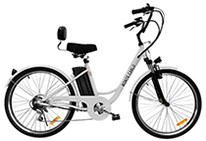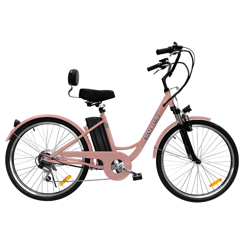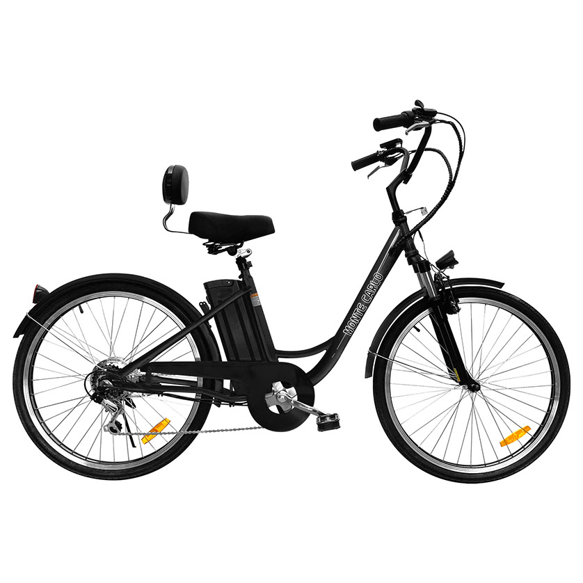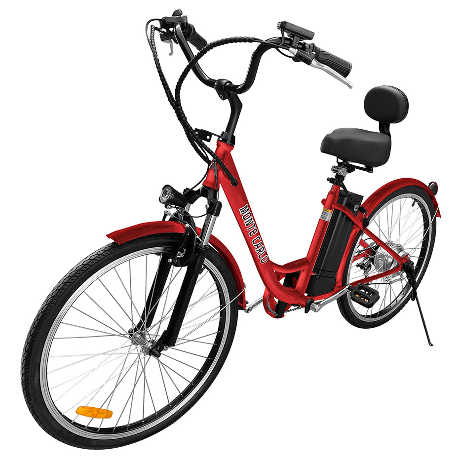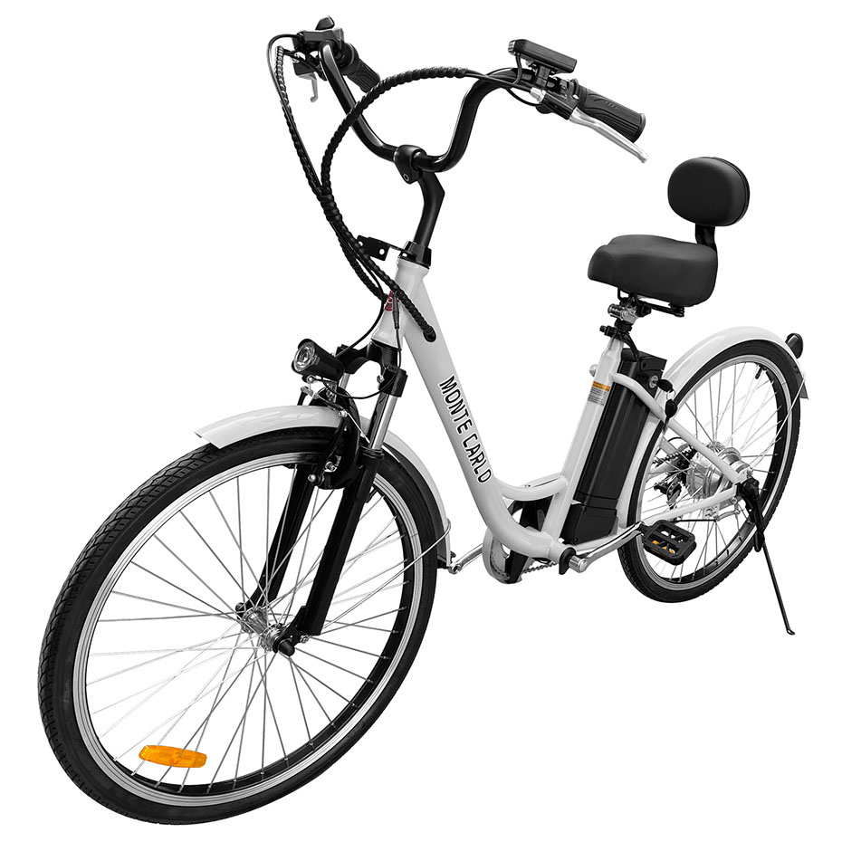 Take a cruise on the beautiful electric bike that captures the essence of the name the Monte Carlo. The Monte Carlo is a comfortable step through ebike that makes getting on and riding a breeze. The Monte Carlo features cruiser style handlebars that makes controlling the bike in an upright position. With its 36V lithium ion battery, choose from one of 3 levels of pedal assist or use the full twist throttle to engage the motor automatically without pedaling at all. Embrace the fun parts of riding a bicycle and let us worry about climbing the big hills with the Monte Carlo, now available form Daymak.