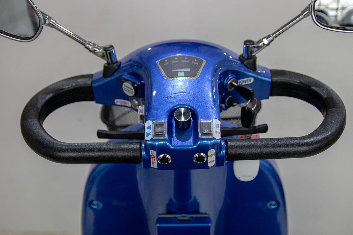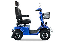 This 4 wheeled scooter is stylish and sturdy. With extra stability and great maneuverability it's great for both indoors and outdoors. Comfort features include: Easy operation, fashionable design, Comfortable Deluxe Captain's style seat, 330lbs user weight capacity, sturdy and stylish steel tubing, Dual-direction rotation seat, Quick release tiller angle adjustment, Height & width adjustable flip-up armrests, adjustable headrest height. Comes standard with anti tippers and large carry basket. Offers good performance on indoor and smooth outdoor surfaces. Rear-wheel drive and compact size provide optimum maneuverability and accessibility.