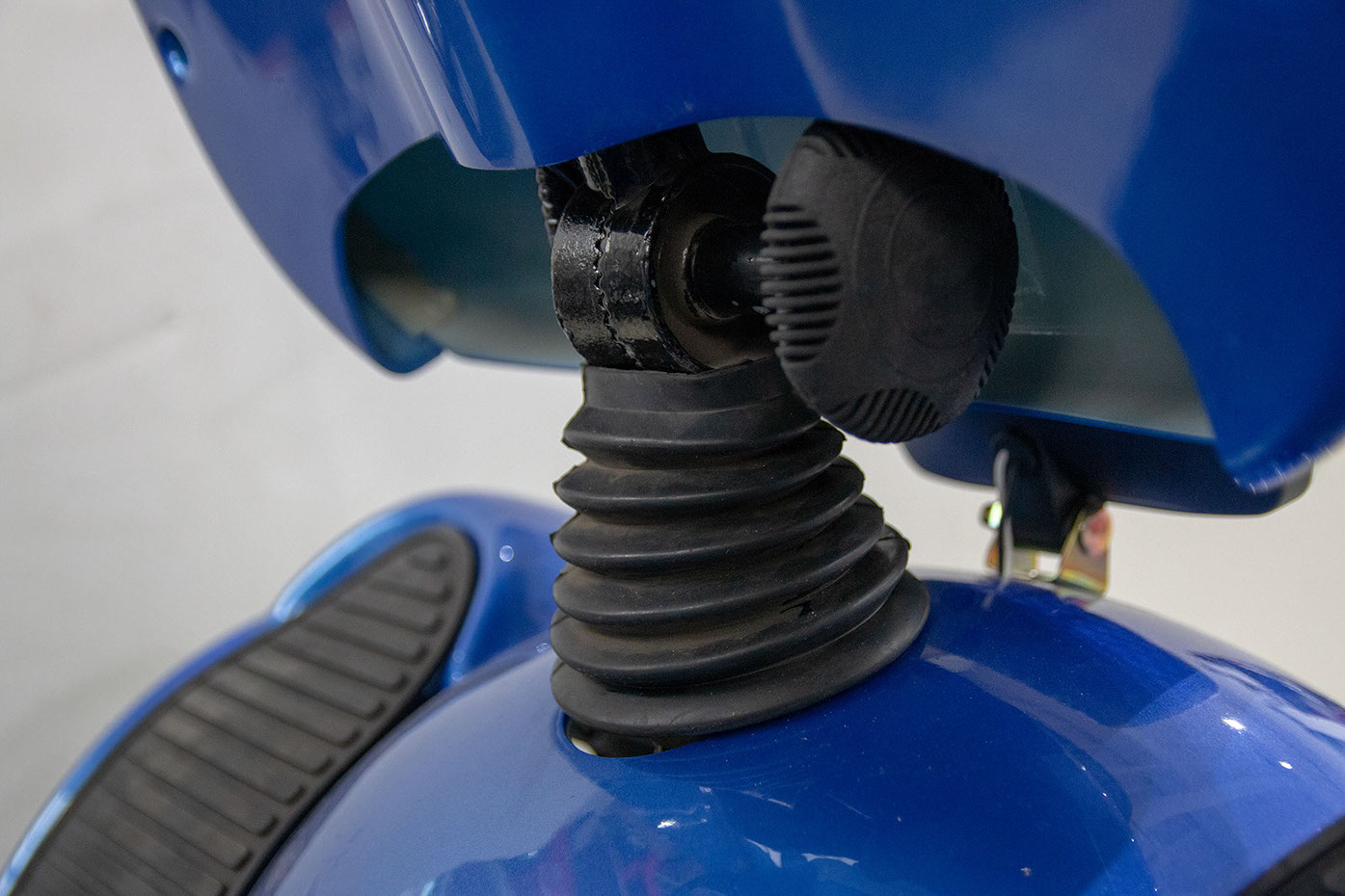 The Boomerbuggy V features an adjustable tiller. This allows you to pull the steering column closer or further from the rider. Simply spin the knob to loosen it and tighten it again once it’s at the perfect positon!